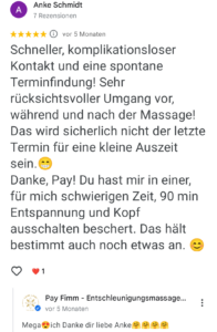 Während und nach der Massage: „Pay, das war der Wahnsinn! Ich habe in meinem ganzen Leben noch nie etwas so Gutes bekommen!